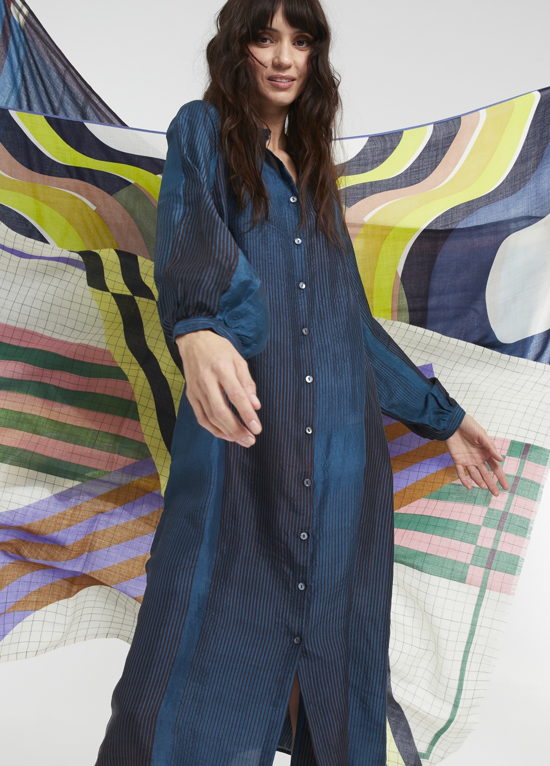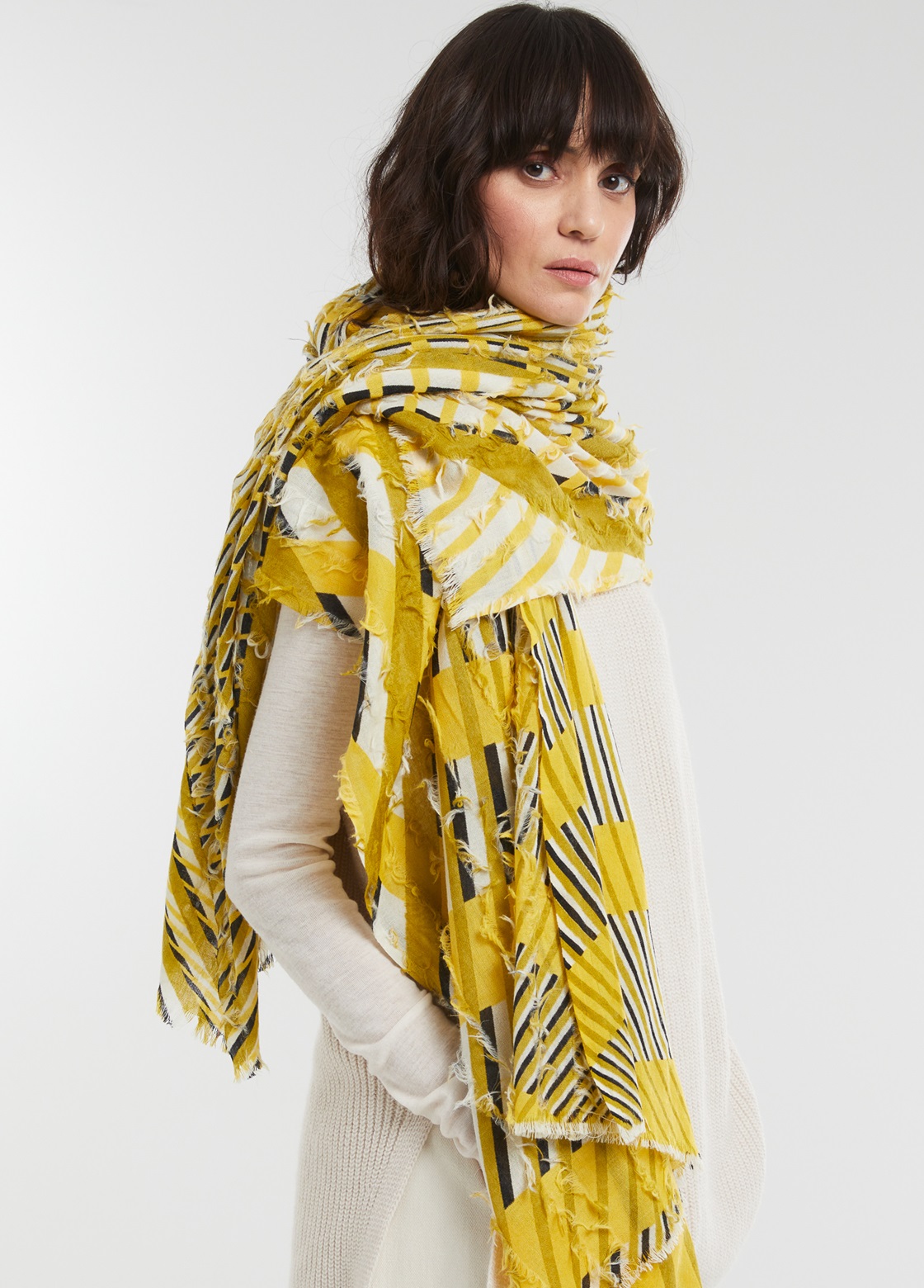 2026/27秋冬,選用喀什米爾、羊毛、羊駝毛、絲等輕暖材質混紡,粉柔挑亮搭配沉穩色系,花葉、水波、雲紋、格紋等,佐以刺繡、流蘇等立體觸感,疊搭抽象幾何元素,豐富視覺感、配搭造型,除了圍巾、披巾、包袋等配件,本季推出一系列服飾款式,為日常穿搭賦予時尚個性品味。